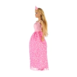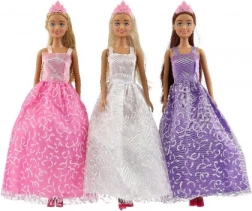 Detailné plesové/svadobné šaty s jemnými vzormi a korunkou dodajú bábike rozprávkový vzhľad.