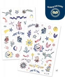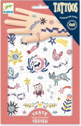 Tetovanie Šťastné Sny od Djeco je očarujúci set trblietavých tetovaní, ktorý okorení každú detskú zábavu a premení ju na nezabudnuteľný zážitok.
