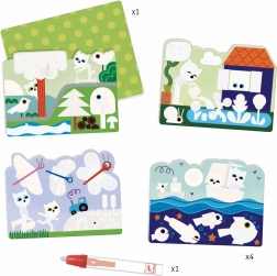 Vodné omaľovánky Mačacie radovánky od DJECO prinášajú deťom množstvo zábavy a zároveň rozvíjajú ich kreativitu. Stačí len použiť mokrý štetec a krásne obrázky sa objavia ako mávnutím čarovného prútika.