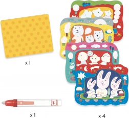 Objavte kúzlo DJECO vodných omaľovánok, ktoré potešia všetky deti. Stačí naplniť pero vodou a začať maľovať. Akonáhle papier vyschne, omaľovánka sa zmení späť na pôvodný obrázok a deti môžu začať znova: