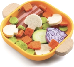 Detská sada Djeco Cook & Scratch je navrhnutá tak, aby podporovala hru na varenie a rozvoj kulinárskych schopností u malých detí. Sada obsahuje drevenú panvicu s vnútorným povrchom opatreným suchým zipsom, čo umožňuje pripevnenie priložených drevených potravín. Tým sa deti učia základným kuchárskym zručnostiam a môžu napodobňovať dospelých pri varení.