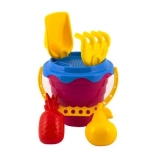 V súprave nájdete všetko potrebné na hranie s pieskom, vrátane vedierka, sitka, lopatky, hrabličiek a dve bábovičky.