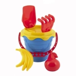 Obsahuje praktické vedierko o veľkosti 12 cm, ktoré je doplnené sitkom pre oddelenie väčších častíc piesku. K súprave patrí tiež lopatka, hrabličky a dve tvarovacie bábovky, čo umožní vášmu dieťaťu vytvárať originálne pieskové stavby.