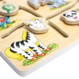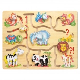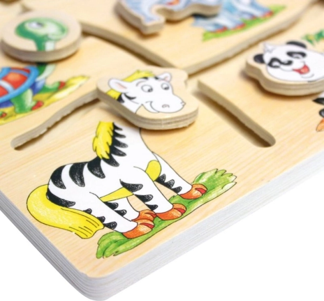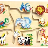 Drevený labyrint so zvieratkami je ideálnou pomôckou na rozvoj detských zručností už od útleho veku. Vďaka farebným motívom a pohyblivým dielikom deti ľahko pochopia, ako priradiť správnu hlavu k telu zvieraťa, a zároveň si precvičia koordináciu ruky a oka.