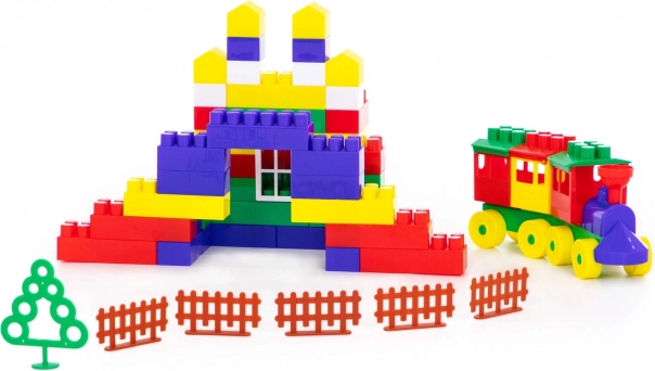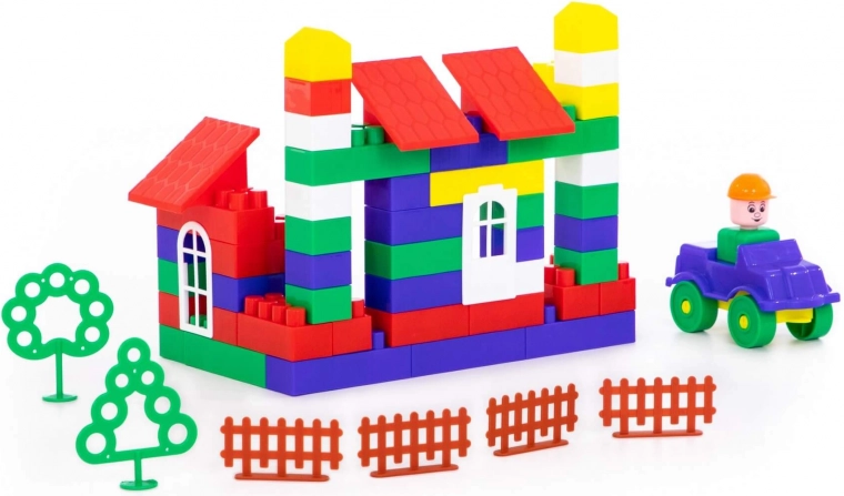 Zahŕňa rôzne tvary ako domy, stromy a ploty, ktoré deti môžu skladať podľa svojej fantázie.