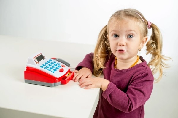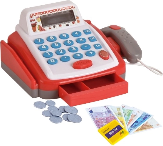 Táto kompaktná digitálna pokladňa je skvelým doplnkom do každého detského obchodu. Vďaka reálnym funkciám si deti vyskúšajú prácu s peniazmi, skenovanie tovaru aj základné počty. Pokladňa je vyrobená z odolného plastu, ľahko sa ovláda a svojimi svetelnými a zvukovými efektmi zaujme na prvý pohľad.