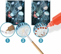 Objavte podmorský svet kreativity s kreatívnou sadou DJECO. Deti vytvoria štyri pôsobivé obrázky s rôznymi efektmi pomocou perleťových farieb a štetca. Sada ponúka jedinečnú textúrovanú farbu pre reliéfne bodky a línie, jednoduché dávkovanie vďaka mini fľaštičkám s hrotom a rôzne povrchové efekty – perleťový, trblietavý aj matný.
