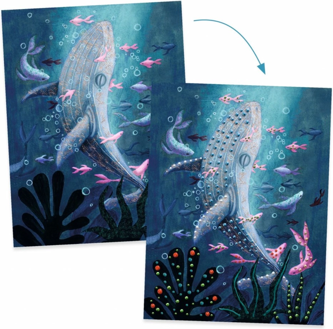 Kreatívna sada Djeco Hlbiny je ideálnou voľbou pre deti, ktoré milujú tvorenie a fascinujú ich tajomstvá oceánu. Sada obsahuje 4 ilustrované dosky (21 × 28 cm), ktoré deti dotvoria pomocou perleťových farieb a štetca. Vďaka špeciálnej konzistencii farieb ľahko vytvoria plastické detaily, zvýraznia kontúry a dodajú obrázkom hĺbku aj žiaru.