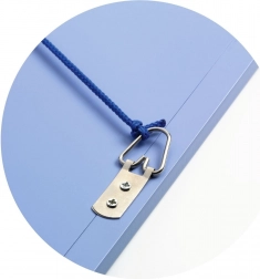 Odolný kovový záves a pevná šnúrka umožňujú jednoduché a spoľahlivé umiestnenie tabule na stenu detskej izby.