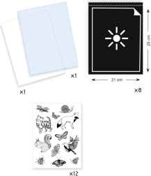 Sada na cyanotypiu od značky Djeco prináša jednoduchý spôsob, ako vytvárať pôsobivé obrazy pomocou slnečného svetla. Na fotocitlivý papier položíte vytlačené vzory, zakryjete plexisklom, necháte krátko nasvietiť a po opláchnutí vodou sa scéna odhalí na ikonickom modrom pozadí. Výsledok je vždy prekvapivý a krásny.
