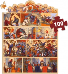 Preneste deti do sveta rytierov okrúhleho stola. Story puzzle Kráľ Artuš od značky DJECO prináša 100 dielikov s krásnymi ilustráciami, ktoré potešia malých objaviteľov od 5 rokov. Súčasťou je aj plagát pre jednoduchšie skladanie a 3 kartónové postavičky na rozvoj fantazijnej hry.