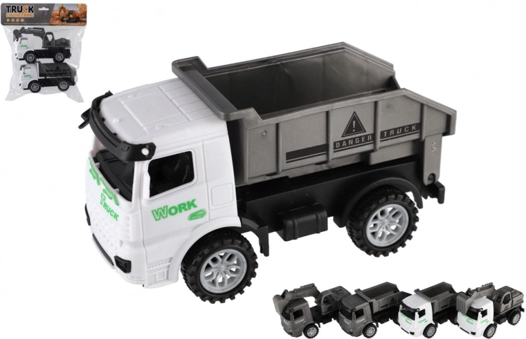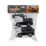 Táto úžasná súprava stavebných autíčiek poteší každého malého staviteľa. Obsahuje 2 plastové vozidlá s dĺžkou 15 cm s pohonom na zotrvačník – stačí zatlačiť a pustiť, a vozidlá sa rozbehnú dopredu.