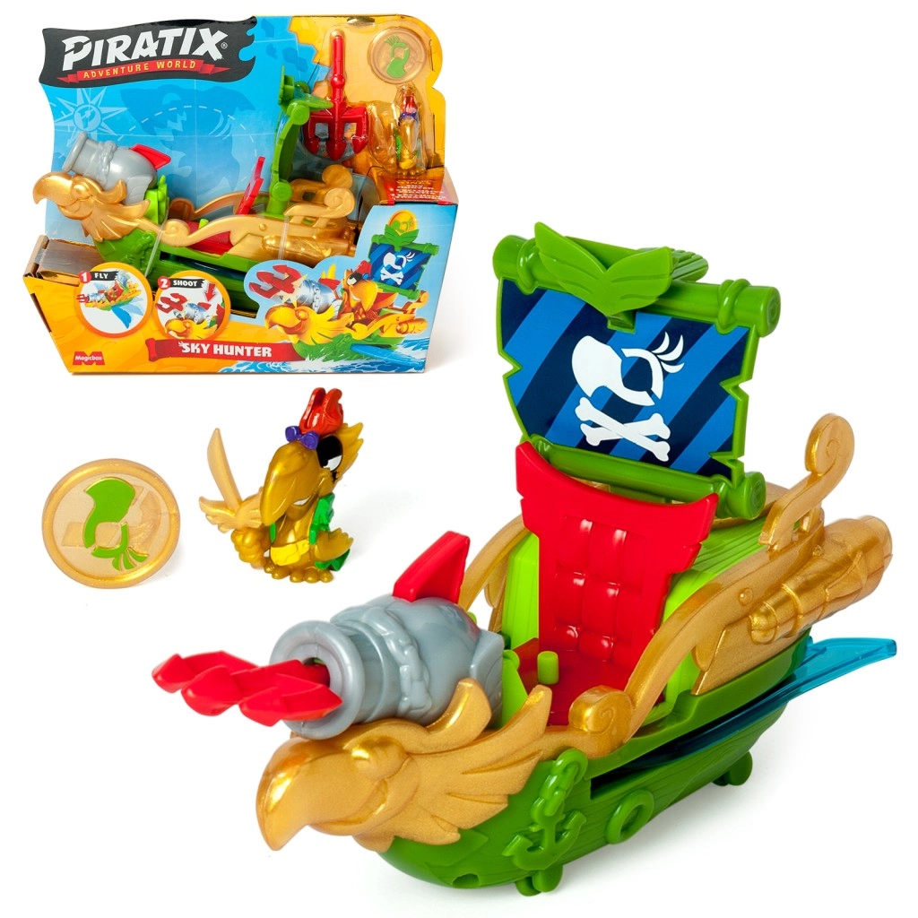 Vydaj sa na napínavú pirátsku výpravu s Piratix Dobrodružným Svetom Sky Hunter. Tento farebný herný set ti umožní vstúpiť do sveta fantastických námorných dobrodružstiev s lietajúcimi a streleckými prvkami.
