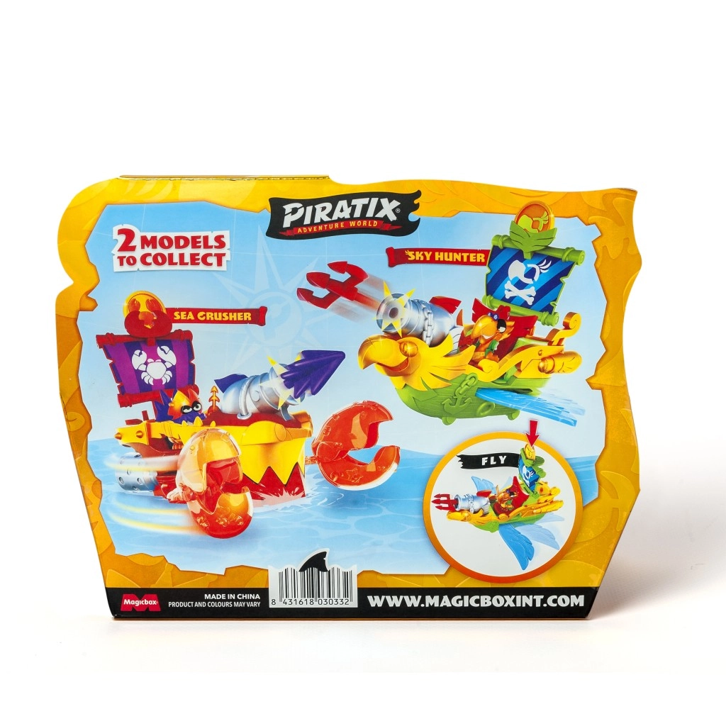 - 1 pirátska loď, 1 exkluzívny Piratix, 1 exkluzívna pokladová minca, 1 doplnok, 1 delo, 1 exkluzívna delová guľa