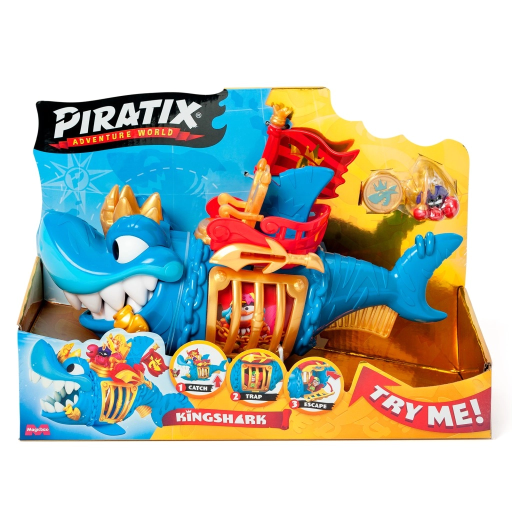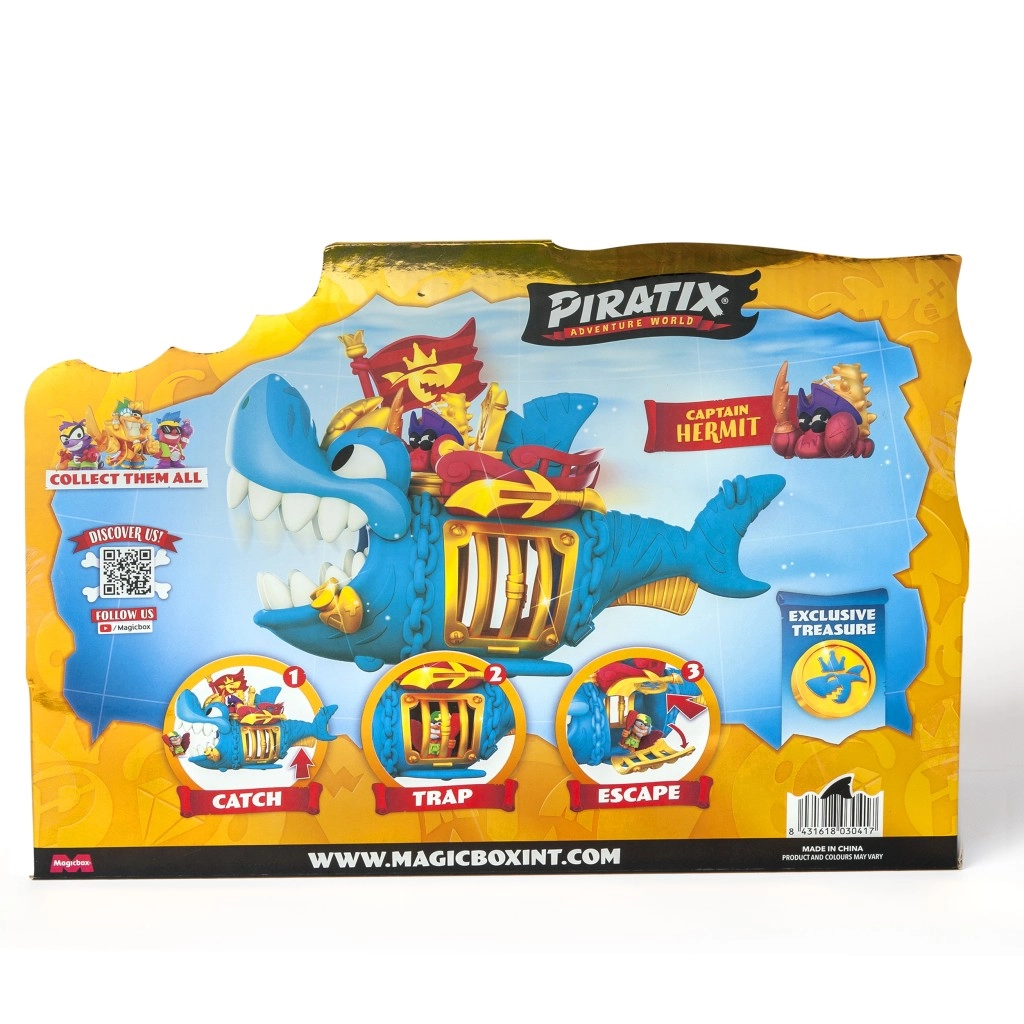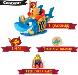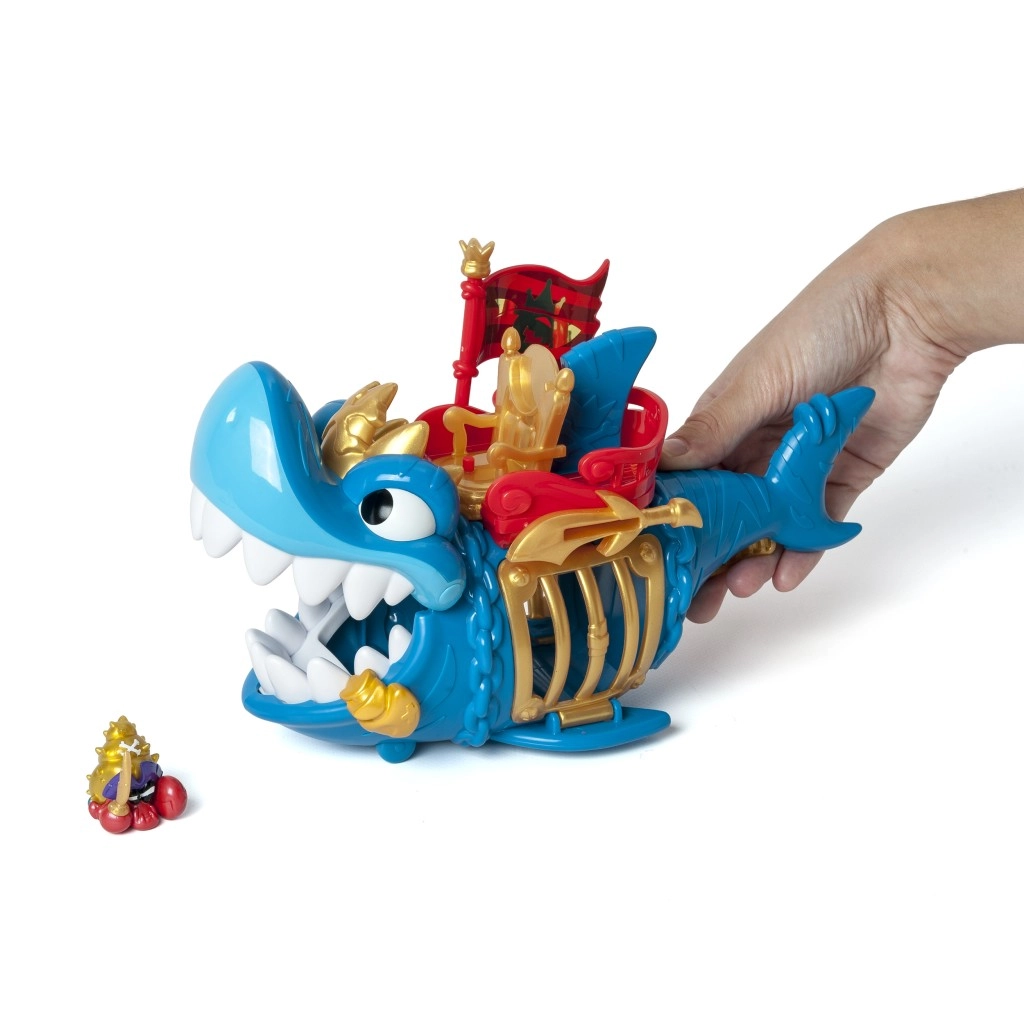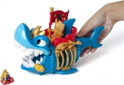 Vychutnajte si prepracované detaily zlato-modrého žraloka s strieborným trónom a pirátsky kapitán, ktorý je pripravený na každé dobrodružstvo.