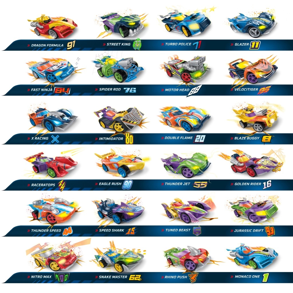 T-Racers sú zberateľské autíčka, ktoré umožňujú nekonečné možnosti pre kreatívny dizajn. Vďaka systému Mix ’N Race môžete: