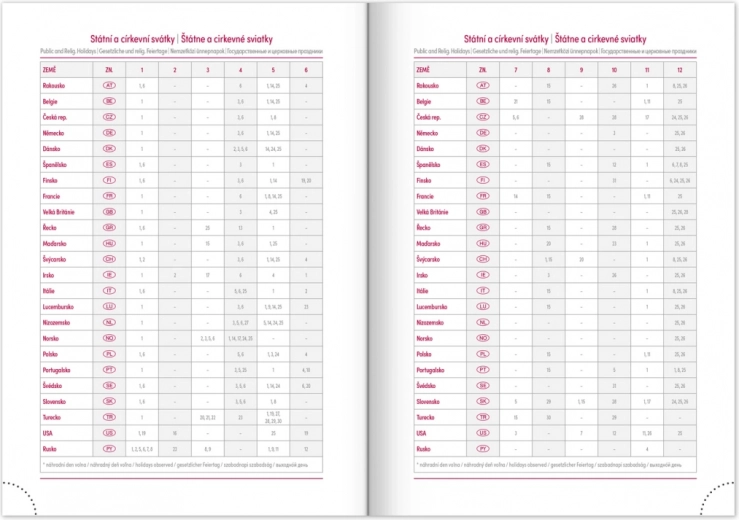 - Mesačné a ročné plánovacie kalendáre, sviatky, mapa