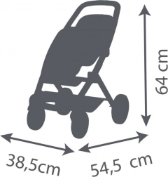 Rozmery kočíka sú 54,5 x 38,5 x 64 cm, čo umožňuje ľahkú manipuláciu i uskladnenie. Bábika nie je súčasťou balenia.