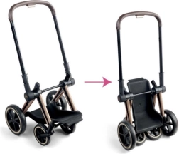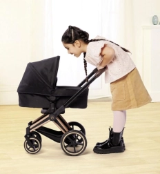 Detský kočík Cybex je navrhnutý pre bábiky tak, aby verne napodobňoval dizajn slávneho kočíka Cybex Priam. Jeho konštrukcia má nastaviteľnú striešku, odnímateľný ochranný kryt a robustný košík pre uloženie doplnkov bábiky. Kočík je ľahko skladací, čo uľahčuje jeho prenášanie a skladovanie.