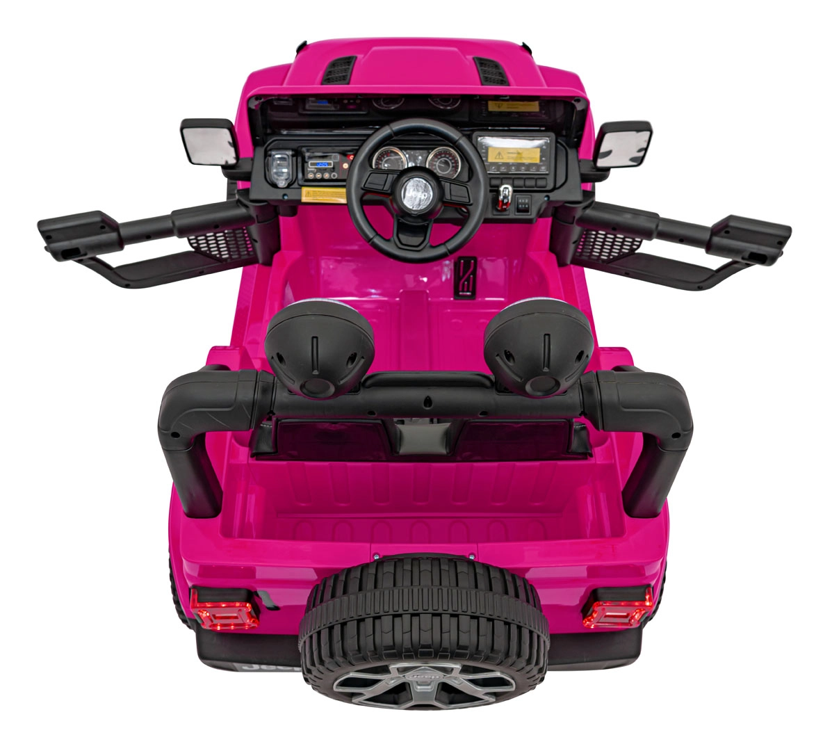 Štýlové detské autíčko JEEP WRANGLER RUBICON v ružovej farbe prináša realistickú jazdu so štyrmi motormi 4×45 W, silnou batériou 12 V / 10 Ah a diaľkovým ovládaním 2,4 GHz pre bezpečný dohľad rodičov. Ponúka penové kolesá EVA, LED svetlá vpredu aj na strešnom oblúku, pohodlné sedadlo z ekokože s bezpečnostnými pásmi a multimediálny audio panel s Bluetooth, USB, SD, MP3 a FM rádiom. Otváracie dvere, predný aj zadný úložný priestor a skladacia rukoväť pre ľahký transport dopĺňajú prémiovú výbavu.