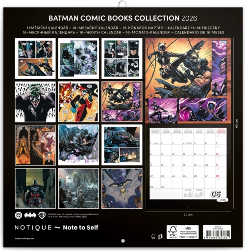 Poznámkový kalendár Batman Comics 2026 je ideálny pre fanúšikov Temného rytiera. Ponúka pôsobivé ilustrácie z Gothamu na každý mesiac roku 2026 a je nielen praktickou pomôckou, ale aj štýlovým doplnkom.