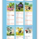Atraktívny nástenný kalendár s ilustráciami od Zdeňka Milera a praktickým formátom kravatového tvaru. Kalendár zahŕňa české a slovenské kalendárium s menami, sviatkami, pamätnými dňami a fázami mesiaca.