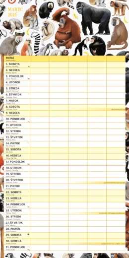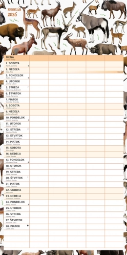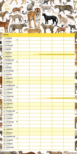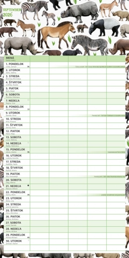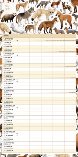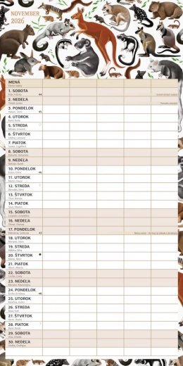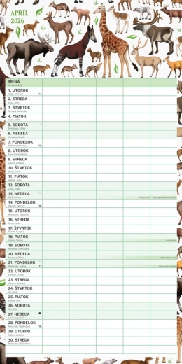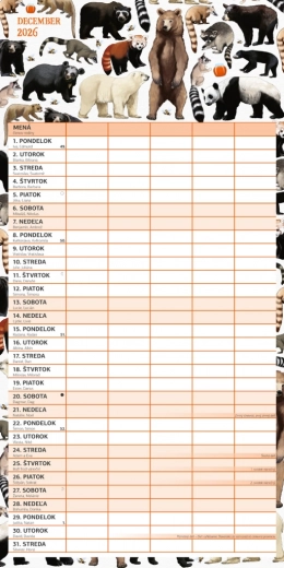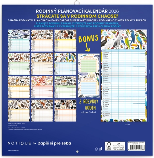 Užite si plánovanie s týmto krásnym rodinným kalendárom Animalium 2026, ktorý obsahuje slovenské kalendárium a umožňuje ľahkú organizáciu aktivít až pre päť členov domácnosti.