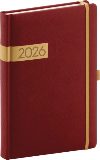Denný diár 2026 v elegantnej bordó-zlatej kombinácii je ideálnym pomocníkom pre precíznu organizáciu vašich dní. Vďaka jedinečnej kombinácii povrchov ponúka nielen štýlový vzhľad, ale aj maximálnu funkčnosť.