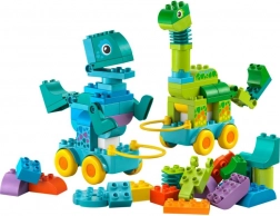 Táto stavebnica nie je len o tvorení, ale aj o hravom učení. LEGO DUPLO kocky sú navrhnuté tak, aby sa s nimi ľahko manipulovalo, čo podporuje rozvoj trpezlivosti a sústredenia u detí. Stavebnica obsahuje tiež podložku s kolieskami, vďaka ktorej možno dinosaury premeniť na pojazdné modely, čo prinesie ešte viac zábavy všetkým malým milovníkom LEGO DUPLO vozidiel.