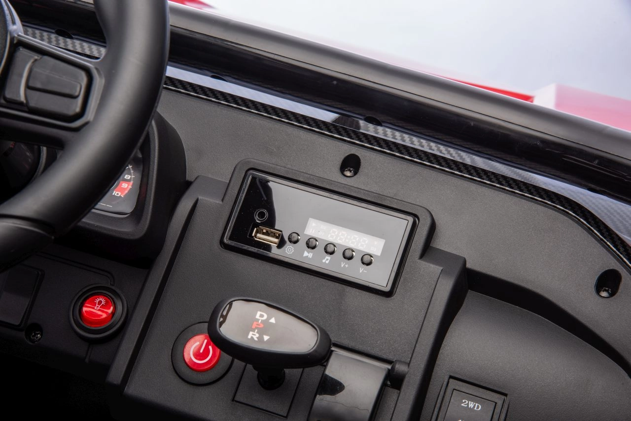 Skvele dopĺňa možnosti zábavy vďaka vstavanému audio panelu s USB, MP3, FM rádiom a AUX vstupom pre prehrávanie obľúbených piesní. Navyše má auto zvukové efekty a klaksón priamo na volante pre ešte väčšiu autentickosť jazdy.