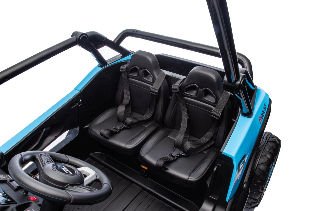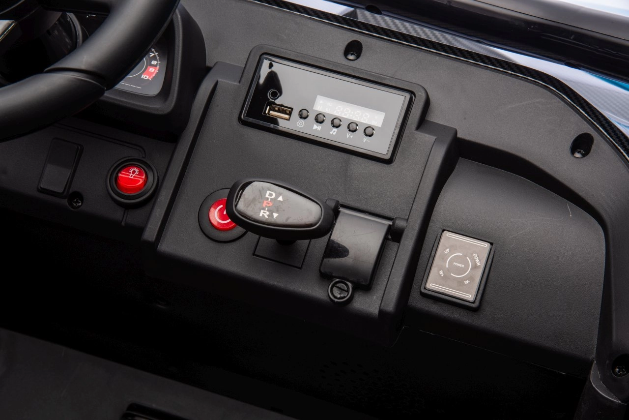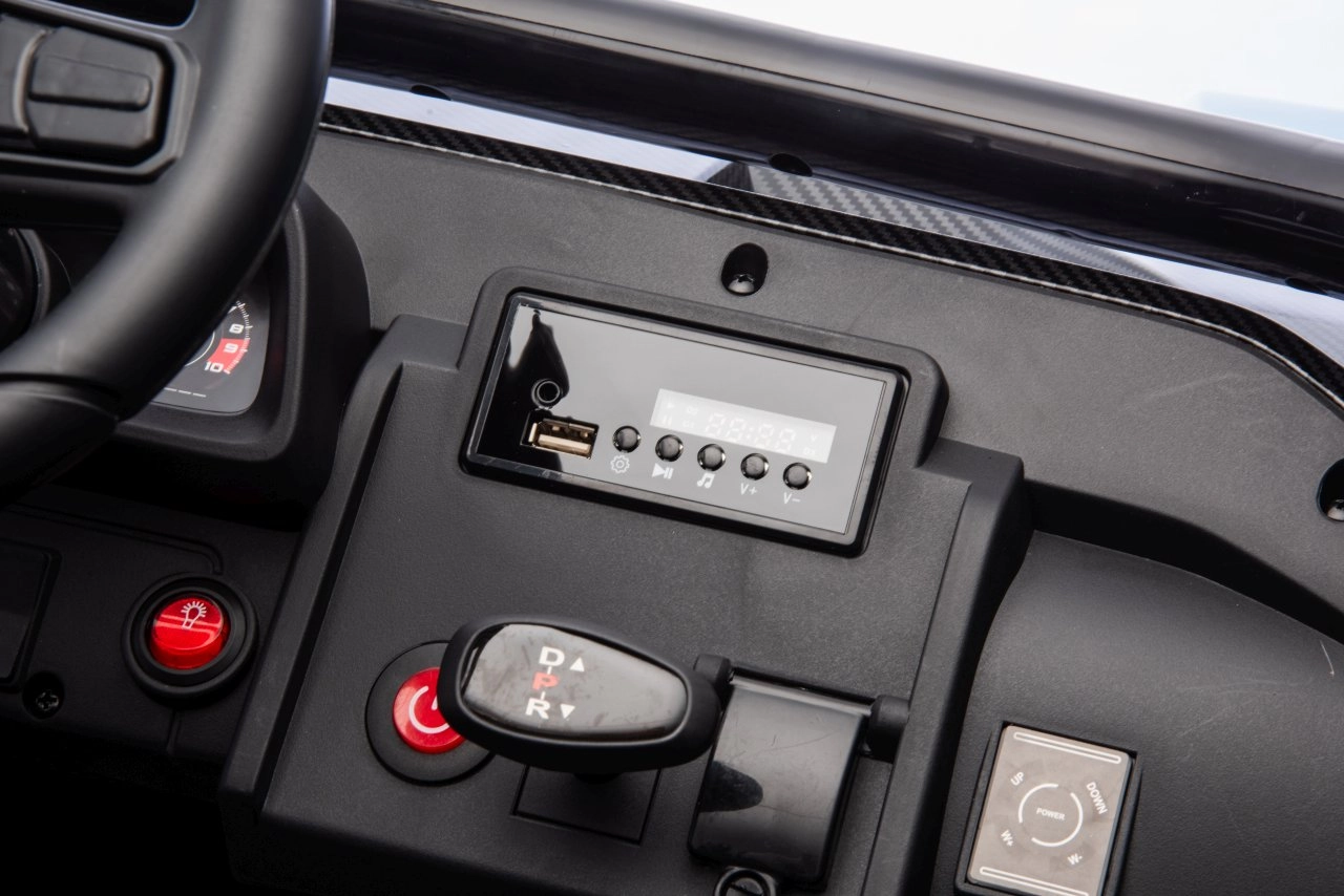 Nezvyčajný komfort zabezpečujú dvojité sedadlá z čiernej ekokože s bezpečnostnými pásmi. Ďalšie funkcie zahŕňajú možnosť otvárania dverí s blokovaním, LED svetlomety vpredu aj vzadu, audiosystém s USB, MP3, FM rádiom a prednastavenými melódiami.