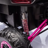 Toto detské elektrické vozidlo je vybavené 4 motormi s výkonom 120W každý a akumulátorom 24V/7Ah, čo zaisťuje silný výkon a dlhú jazdu. Má diaľkové ovládanie na 2.4 GHz s trojitou rýchlosťou a bezpečnostným tlačidlom Stop pre maximálnu bezpečnosť.