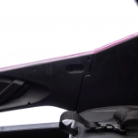 - Otváracie dvere s blokáciou a bezpečnostnými pásmi na dvojitom sedadle pokrytom čiernou ekokožou.