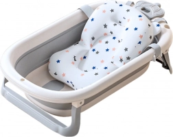 Vanička je vybavená stabilným skladacím rámom s protišmykovými nohami, ktoré zvyšujú priľnavosť a zabraňujú nechcenému posúvaniu. Je vyrobená z bezpečných, netoxických materiálov PP a TPE, ktoré sú jemné k citlivej detskej pokožke a odolné proti poškodeniu. Súčasťou balenia je mäkká kúpeľová podložka, ktorá drží dieťa v pohodlnej polohe a poskytuje mu teplo a pocit bezpečia.