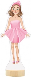 Bábika, 30 magnetických častí (oblečenie, topánky, doplnky), drevený podstavec