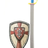 Staň sa statočným rytierom bezpečne a hravo! Tento penový meč so štítom s dĺžkou 75 cm je ľahký, mäkký a ideálny na bezpečnú hru doma aj vonku. Vhodné od 3 rokov.