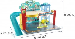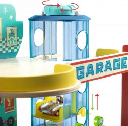Drevená garáž od Djeco je ilustrovaná hračka, ktorá sa perfektne hodí do sveta Crazy Motors. Obsahuje ľahko ovládateľný výťah, odnímateľné príslušenstvo a ponúka zábavné parkovacie možnosti.