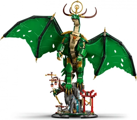 Tento Strážny drak z kolekcie LEGO NINJAGO je viac než len stavebnicou – je skutočným umeleckým dielom. Model je doplnený o detailný podstavec s jazerom, vznášajúcim sa magickým mečom, lampášom a bránou. Nechýba ani minifigúrka obľúbeného majstra Wu.