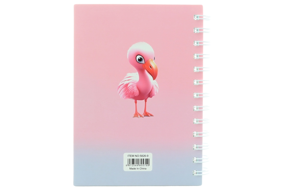 Zápisník s krúžkovou väzbou a atraktívnym motívom plameniaka je ideálny pre každodenné používanie. Predné dosky sú polstrované a tvarované, čo zaručuje trvanlivosť aj estetický vzhľad.