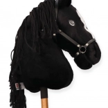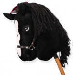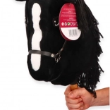 Čierna plyšová hlava s hrivou, bielou lysinkou a dekoračným uzdením dodáva koníkovi autentický vzhľad, ktorý deti okamžite vtiahne do hry.