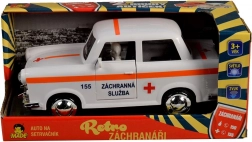 Novinkou v kolekcii Retro záchranárov je táto sanitka na zotrvačník, ktorá je zhotovená v bielom retro dizajne záchrannej služby. Auto je vybavené: