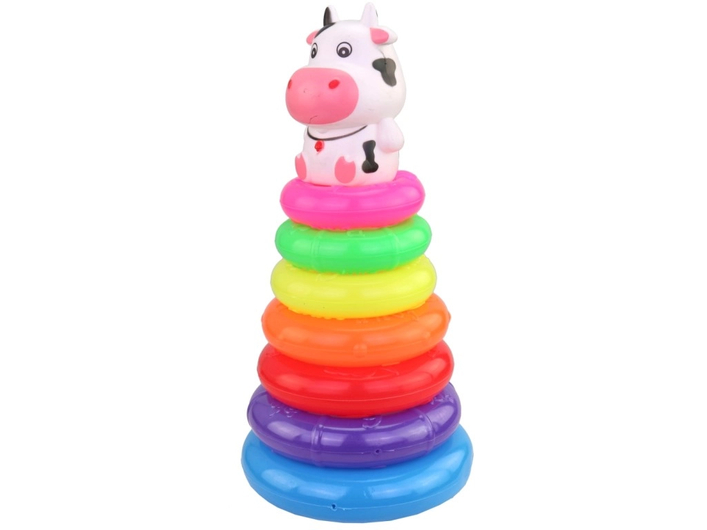 Táto zábavná pyramída v tvare kravičky je ideálna pre deti od troch rokov. Pomáha rozvíjať motoriku a kreativitu vášho dieťaťa.