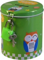 Táto pokladnička sa skvele hodí ako doplnok do detskej izby vďaka svojim veselým farbám a kompaktným rozmerom 8 x 7 x 7 cm.
