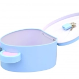 Pokladnička je vyrobená z plastu a kovu, čo zaisťuje jej odolnosť a dlhú životnosť. Je dostupná v troch farebných variantoch, čo ju činí vhodnou pre každého malého pokladníka.