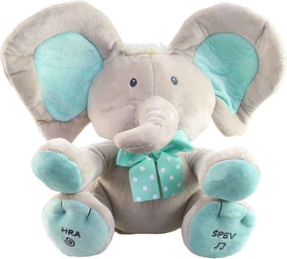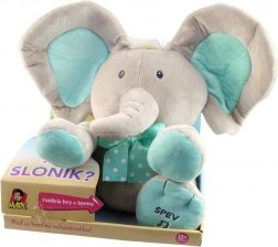 Sloník je hebký plyšový priateľ, ktorý dieťaťu prináša nielen zábavu, ale aj rozvíja jeho zmysly a komunikačné schopnosti. Po stlačení ľavej labky počuť veselú pesničku, zatiaľ čo pravá labka aktivuje obľúbenú hru na schovávačku.