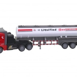 Hračka presne napodobňuje skutočný cisternový kamión s detailmi, ako sú nápisy 'Liquified Gas' a 'NO SMOKING'.
