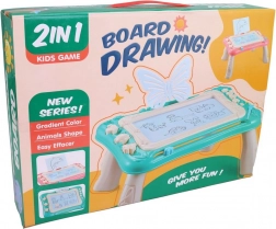 Magická tabuľka 2 v 1 je ideálnou hračkou pre malých umelcov a začínajúcich pisárov. Vyrobená z kvalitného plastu, poskytuje bezpečné hranie bez ostrých hrán a ponúka dve možnosti použitia: ako samostatná tabuľa alebo ako stolík s nasadenými nohami.