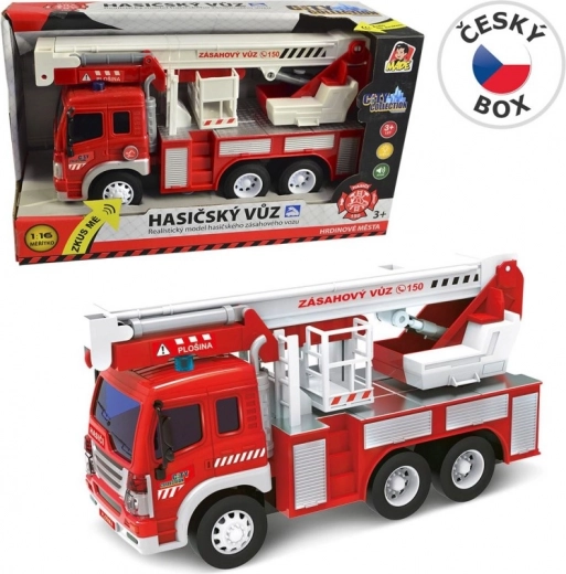 Hasičské Auto s Plošinou z kolekcie Mestská je skvelým doplnkom pre každého malého hrdinu. Realistický model na batérie, ktorý svieti a vydáva zvuky, prináša autentický zážitok z riadenia hasičských vozidiel.