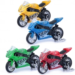 Kovová závodná motorka o veľkosti 11 cm je skvelou hračkou pre malých pretekárov vo veku 3 a viac rokov. Vyrobená z kvalitného plastu, zaručuje dlhú životnosť a bezpečnosť pri hre.