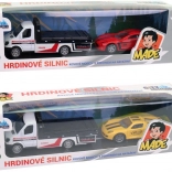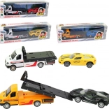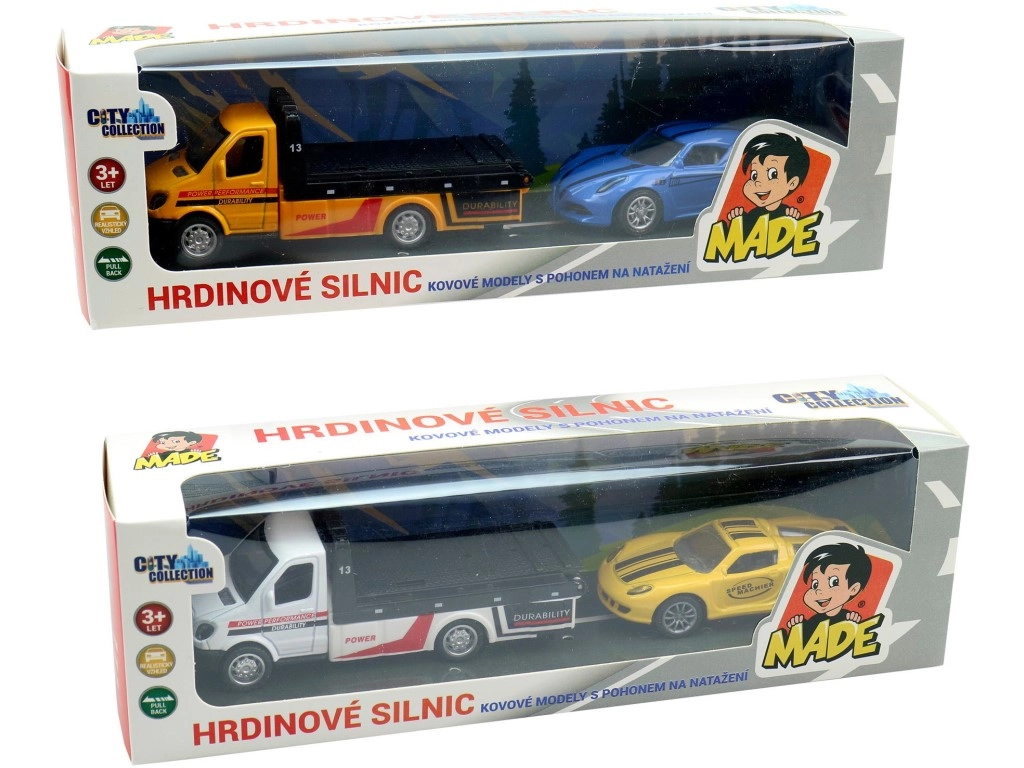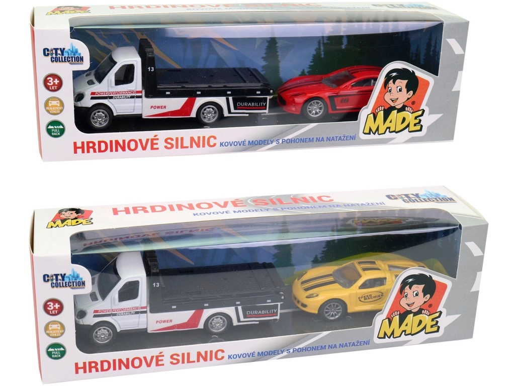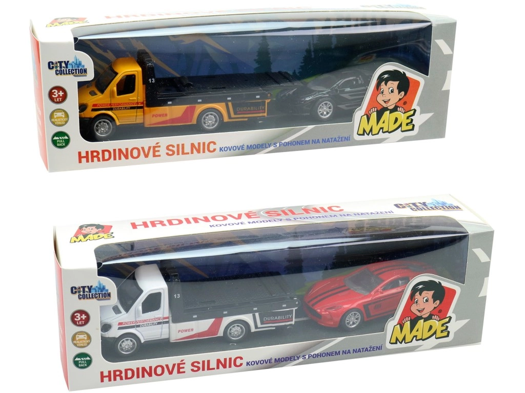 Tento kovový odťahový automobil je skvelým doplnkom do zbierky hračiek pre všetkých malých nadšencov do áut a stavebných strojov. Vďaka štvorom rôznym farbám a druhom dokáže zaujať a podporiť kreativitu a fantáziu. Nemusíte sa starať o batérie – vozidlo je pripravené k okamžitej hre. Po hre môžete všetko jednoducho uskladniť v priloženej praktickej krabici.